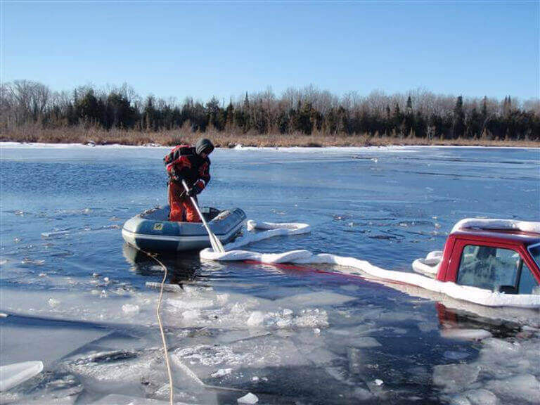 Our specially trained team works around the clock to respond when vehicles go through the ice or become